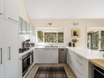 The outdoor area is ideal for entertaining or unwinding, featuring an outdoor dining setting, BBQ and relaxed seating areas to soak up the peaceful surroundings from morning through to evening. The kitchen is fully equipped with modern appliances including a dishwasher and coffee machine, with fresh coffee provided for your stay.