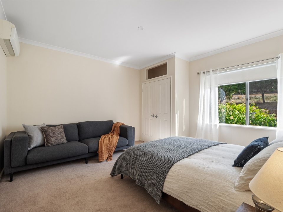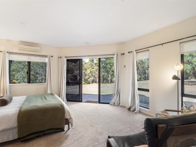A separate TV room sits just off the main living space, complete with a smart TV, PlayStation and games, making it a great retreat for kids or a quiet movie night. Down the hallway, you will find a queen bedroom, a separate toilet, and at the end, the spacious master suite featuring a king bed, ample storage and a private ensuite with shower and toilet. Sliding doors from the master open directly onto the veranda, allowing you to enjoy tranquil garden and kangaroo views right from your bed.