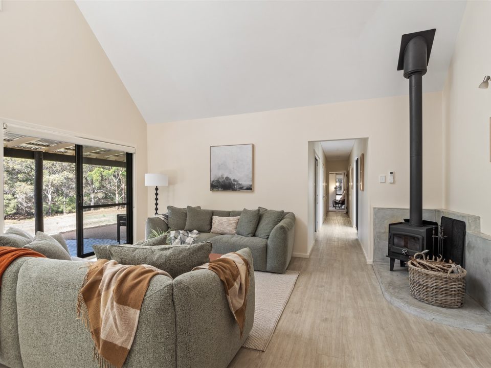 This four-bedroom, two-bathroom villa has been designed for comfort and easy living, with a warm and welcoming layout that flows effortlessly throughout the home. Enter through the spacious entryway and step into the heart of the home, an open plan kitchen, dining and living area complete with a fireplace, perfect for cosy evenings. Large doors open out onto the covered veranda, where you can enjoy sweeping garden views and watch kangaroos wander by.