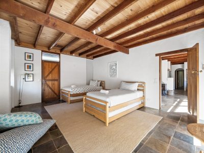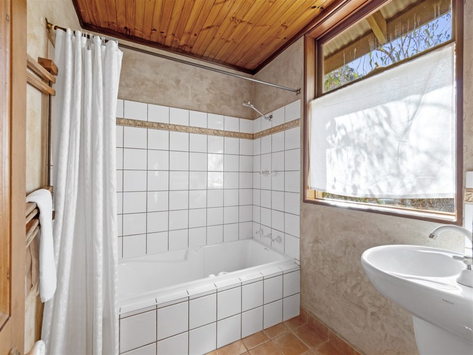 When it's time to retire for the night, The Bower House offers three comfortable bedrooms to accommodate your family or group. The master room boasts large glass windows that flood the space with natural light, offering picturesque views of the surrounding bush. Here, at the far end of the house you'll find a luxurious king-sized bed, walk in robe and an ensuite bathroom, providing a private sanctuary for relaxation.