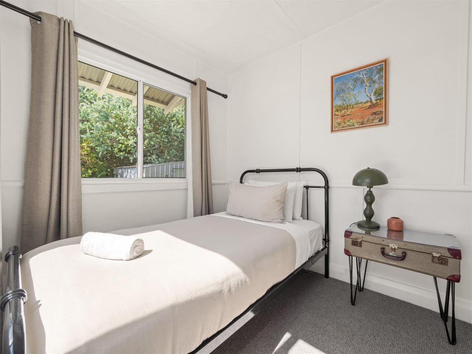 This three-bedroom, one-bathroom cottage has been thoughtfully brought back to life with great care and attention. Inside, the warm glow of the polished jarrah floors sets the tone for a homely stay. Both spacious bedrooms feature comfortable king-size beds. The third room offers a single bed, ideal for families or friends who prefer sleeping in separate rooms.